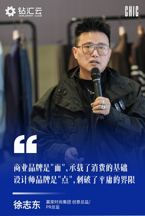 深圳市赢家服饰有限公司PR总监徐志东以“设计师品牌与商业品牌的对话”为题,生动诠释了二者的共生关系:“商业品牌是‘面’,承载消费基础;设计师品牌是‘点’,刺破平庸界限。”并点明:“未来的赢家,是那些学会用商业逻辑保护设计灵魂的人。”