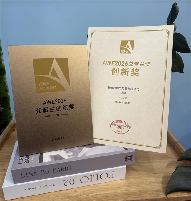 凭借出众的设计、技术与产品创新,飞利浦空调Cc1在2026中国家电及消费电子博览会(AWE)中脱颖而出,荣获2026 AWE艾普兰创新奖。
