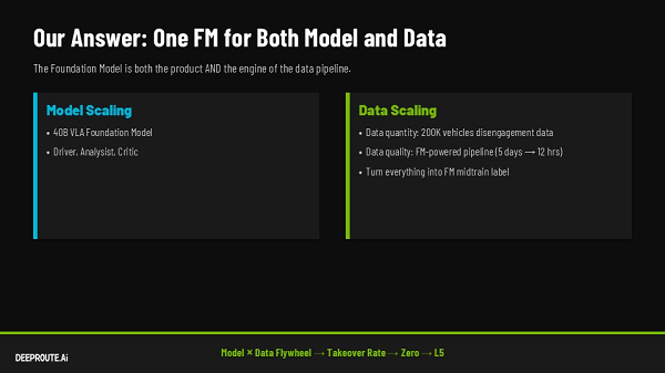 随着模型能力不断提升,数据处理效率也将持续提高,从而形成模型能力与数据规模相互增强的循环飞轮,让每一次迭代都转化为AI能力的持续积累。在这一体系下,数据闭环流程的周期已从过去的约5天缩短至约12小时,大幅提升了研发效率。