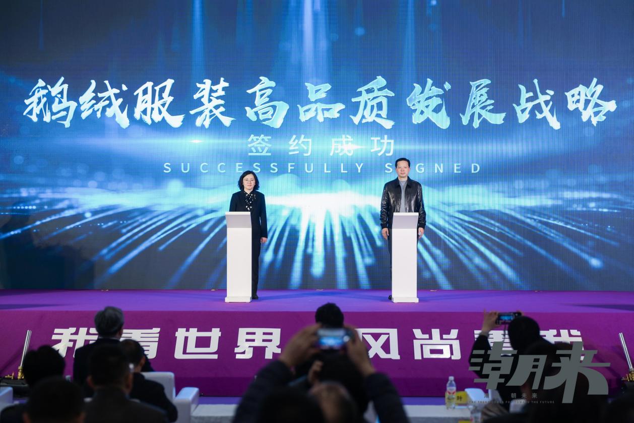 开幕式上,中国羽绒工业协会与海宁中国皮革城成功签订“鹅绒服装高品质发展战略”。这一签约,标志着高端鹅绒服装产业标准化、规范化发展迈入全新阶段,也为海宁秋冬时尚产业的融合升级筑牢根基。