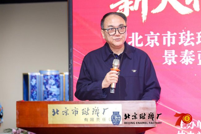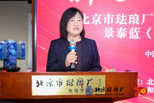 北京市珐琅厂总经理董艳娜代表主办方致辞。她回顾了珐琅厂自1956年建厂以来,从恢复传统技艺到引领行业发展,从服务国家外交到走进寻常百姓家的七十年风雨历程。她表示,七十载是里程碑,更是新起点,珐琅厂将继续秉持“传承经典、创新发展”的理念,让景泰蓝这门古老艺术在新时代焕发更加璀璨的光芒。