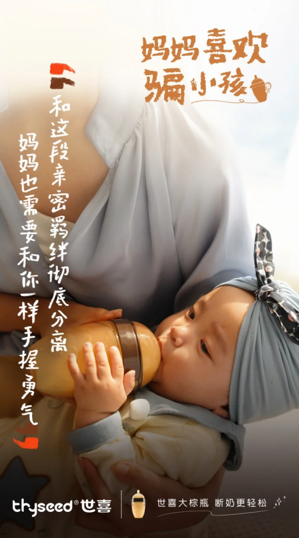 传播端的配称动作精准锚定断奶场景的情感与需求痛点,精准触达心智战场,让品牌认知持续触达目标人群。2022年母亲节,世喜推出“妈妈喜欢骗小孩”主题短片,获得7428万+全网总曝光,相关微博话题2小时阅读量突破千万,引发众多育儿家庭的情感共鸣。同时,世喜在抖音、小红书等社媒平台与众多达人合作种草,内容均围绕断奶期的喂养难题展开,让消费者在接触品牌的过程中,不断强化“世喜大棕瓶,让断奶更轻松”的认知,实现产品价值与品牌定位的深度绑定。