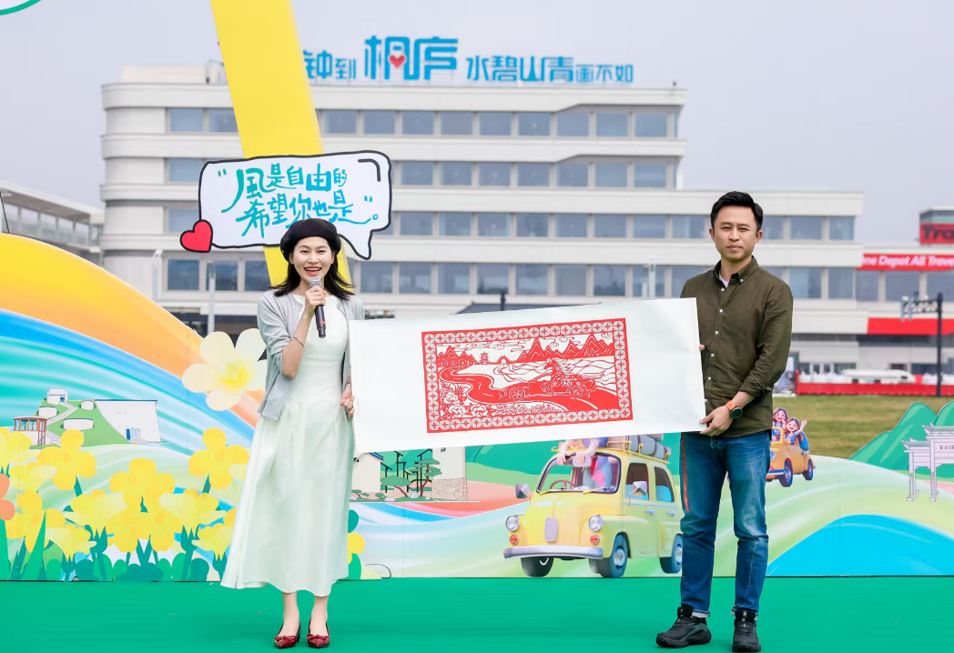 更具巧思的是,桐庐以国家级非遗剪纸为媒,由非遗传承人将富春春色、花海盛景、智能座驾、马术活力融于一纸,为春花自驾注入独有的文化印记。