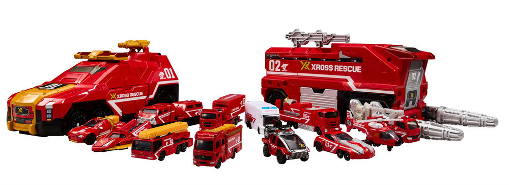 中型车辆以动画中登场的主力救援车辆“联合救援泽龙号”和“联合救援伏虎号”为原型,不仅有多个可动部件,每款还附赠一台特别色多美卡小车。两款中型车辆还可像动画中一样合体,实现更多玩法。多美卡迷你合金车则汇集了消防车、救护车等多种救援车型,每款均配备不同机关,展现救援场景。此外,“联合救援 多美卡救援基地”等游戏套装配备了多种互动机关,可与另售的多美卡小车联动游玩,构建完整的救援世界观。