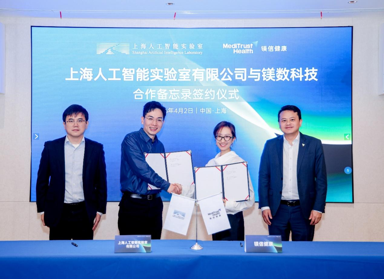 立足国家战略布局,依托上海人工智能和生物医药两大先导产业优势,近日,上海人工智能实验室有限公司与上海镁信数字科技有限公司(以下简称“镁数科技“)正式签署合作备忘录,开启科研力量与产业生态深度融合的全新篇章。