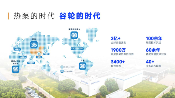 谷轮深耕暖通制冷领域数百年,业务覆盖全球40余个国家和地区,拥有18,000名专业员工,在9个国家设立研发与制造基地。其重要热泵技术经全球超过2亿台终端装置验证,技术成熟度与稳定性处于行业前列水平。进入中国市场以来,谷轮为国内绝大多数热泵、空调品牌提供主要技术与主要部件支持。在北方“煤改电”政策推进高峰期,国内超过三分之二的热泵设备主要技术源自谷轮,是中国热泵产业发展的重要技术支撑方。2024年,谷轮获黑石集团全资控股后,以2026年纽交所上市为发展契机,多方布局住宅、商业、工业、农业等全场景热泵应用市场,全球化发展步伐明显加速。