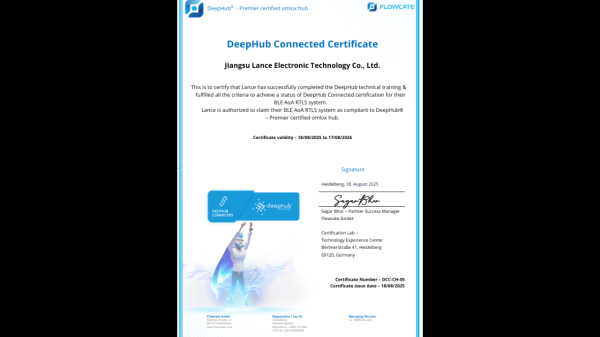 值得关注的是,该公司的 BLE AOA RTLS 系统已通过 DeepHub™ Connected 认证,这项国际定位领域认证充分验证了系统具备出色的开放性与跨设备互操作性。