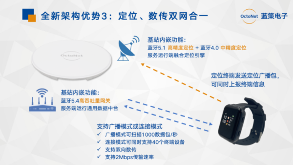 在物联网应用中,终端设备往往不仅需要被定位,还需要上报传感器数据或接收控制指令。传统方案通常需要分别部署定位网络和数据传输网络,增加了系统复杂度和投资成本。蓝牙AOA技术与高速数传能力的融合,为解决这一问题提供了新路径。