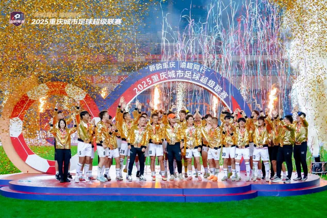 4月12日,重庆奥林匹克体育中心,两江临空队以2:1战胜江津润通动力队,捧起首届渝超联赛冠军奖杯,54260名球迷的呐喊声震彻夜空。