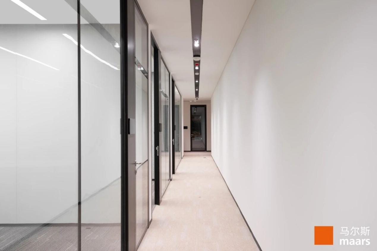 马尔斯maars Frozen AS 1.0h给出的答案,是一面仅48毫米的防火玻璃隔断墙。它防火,所以提升空间安全;它薄,所以让步于空间;它透,所以成全了视野;它无柱,所以消解了隔阂。