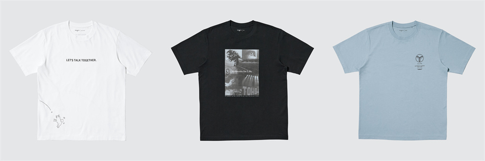 • 作为优衣库战略合作伙伴,综合性化学制造商东丽株式会社于今年迎来了成立100周年。本次T恤的设计采用了公司的原创标志,该标志由代表天、地、人的三个连锁环组成,诠释了东丽“以先进材料创造丰富生活,让世界更美好”的品牌承诺。