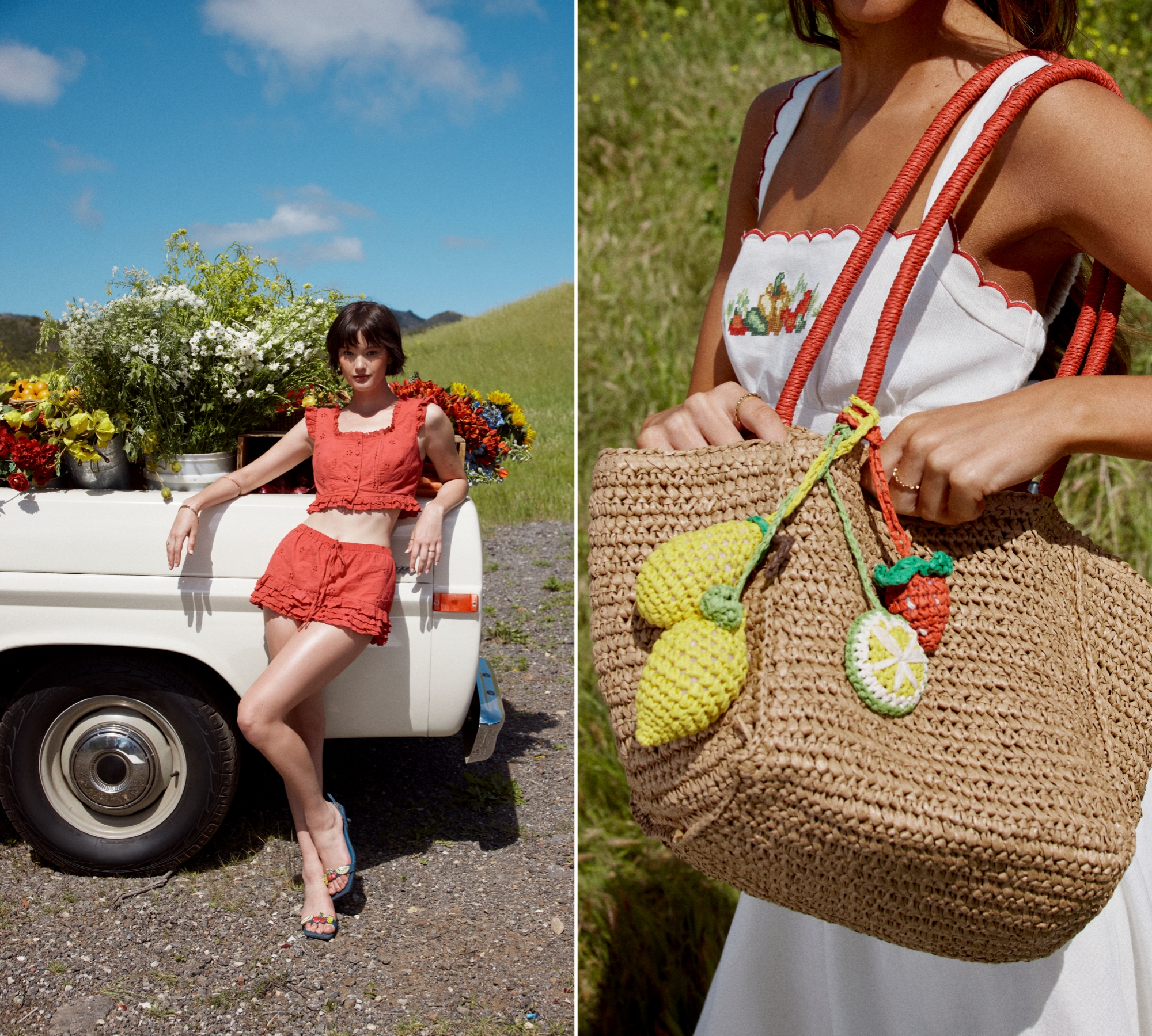 同步推出的“Original Farmers Market限定系列”,则将品牌美学与门店所在地的文化做了更深度的绑定。该系列以市集文化为灵感,融入趣味食物图案、棋盘格元素,通过钩针编织、刺绣等手工细节呈现,涵盖服装、泳装及配饰单品。它将Farmers Market近百年的生活气息转化为了CIDER独有的玩味设计语言,这种“在地化限定”策略,既制造了稀缺感,也强化了门店与所在社区的情感关联。