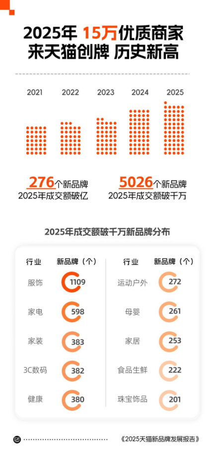 2025年来天猫创牌的新商家达到历史新高,达到15万个;