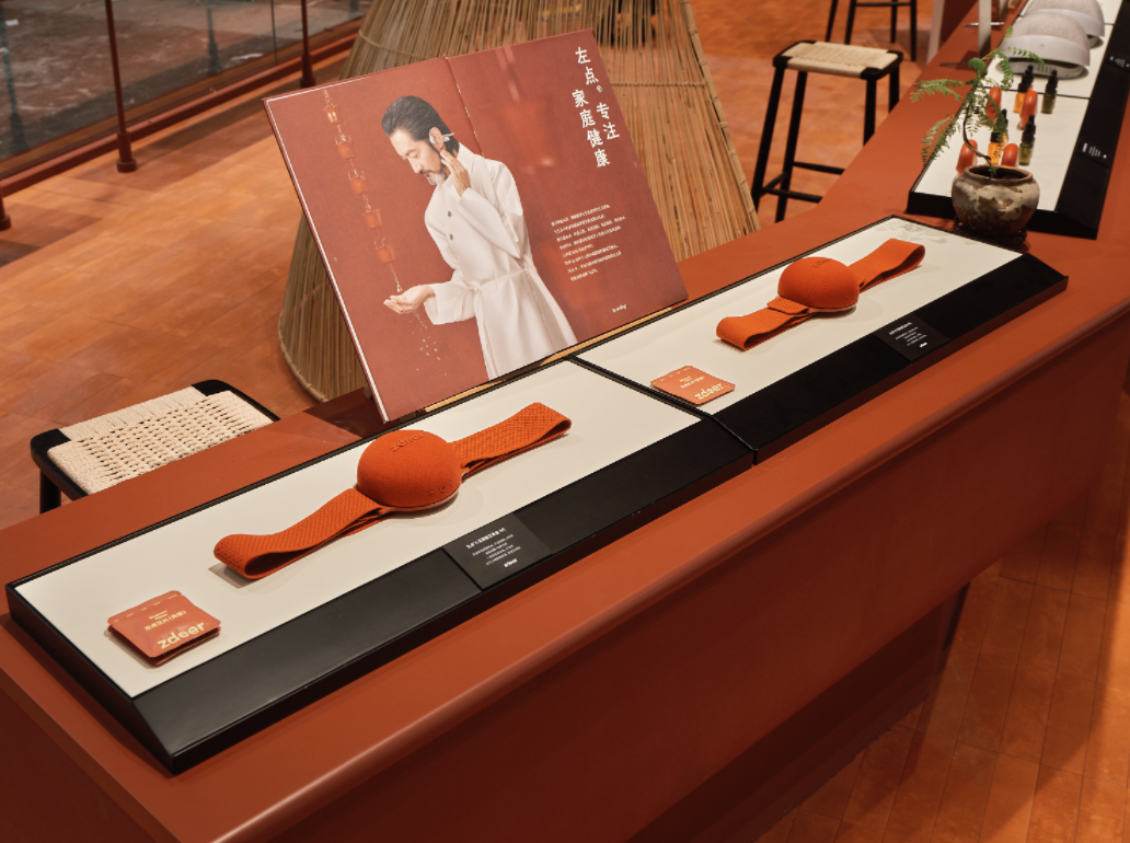 这是一处刻意弱化传统医疗展冰冷感的场域,丹砂色的展台取代了千篇一律的白蓝冷调,让健康关怀如宝物般被珍藏与馈赠。据悉,现场左点构建多板块主题产品展览,每一个区域都对应着一份关于家庭健康的独特叙事。每一处板块都在演绎一种“礼”的可能:艺术装置以竹编诉说生命滋养,传递“健康如礼,生生不息”的祝愿;科技医疗板块将专业的家庭健康解决方案化为安心之礼,覆盖助听、血压、生发等多元场景,让硬核能力融入日常关怀;健康生活板块则循东方智慧,将热敷、艾灸等养生方式升华为居家疗愈仪式,让每一次使用都成为身心滋养;探寻新品区带来智能口喷等潮流健康单品,让礼物兼具实用与颜值;打卡有礼区则将这份美学装入定制礼袋,让温暖心意随行而归。