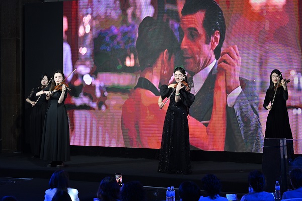 光影轻落,雅乐开篇。四位小提琴艺术家联袂演绎经典奥斯卡金曲《闻香识女人》四重奏旋律,温润乐声交织氛围感光影画面,铺展沉浸式高定美学场域。以雅致音律叩响美学序幕,沉静全场心境,顺势诠释内核主张:奔赴高阶精致、敢于逐美,本就是当代人自带的高阶底气与勇气。