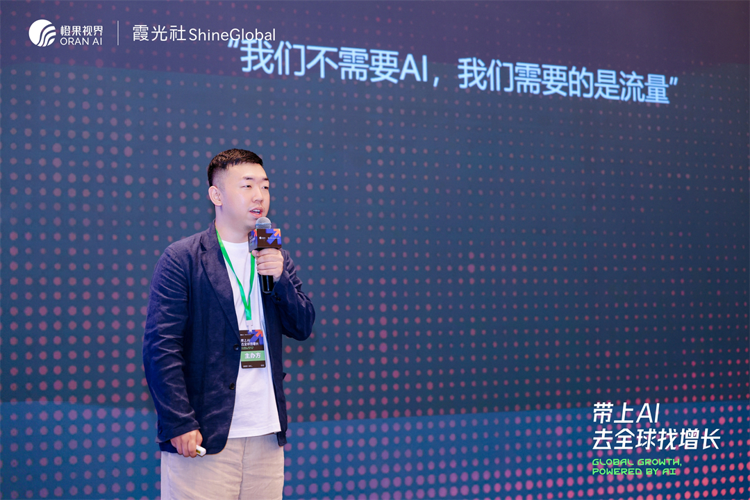 橙果视界创始人兼CEO刘昆在演讲中一针见血地指出:“AI越来越聪明,品牌却越来越难过。因为AI本身不等于生意的结果,生意=流量+产品。”