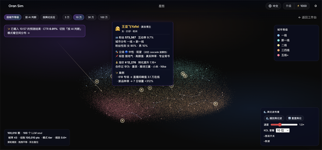 OranSim 星图模式:可视化呈现候选 KOL 矩阵与辐射人群