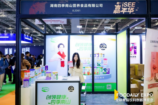 “创新”无疑是“Foodaily创博会”最大的关键词,四季南山以“创领健康”为核心,携手0-100岁全生命周期营养产品矩阵隆重亮相。